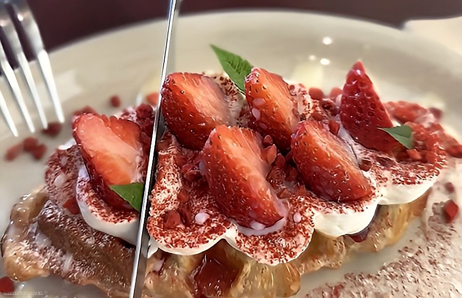 甜點亮眼:草莓可朗芙、肉桂蘋果鬆餅顏值與口感兼具。